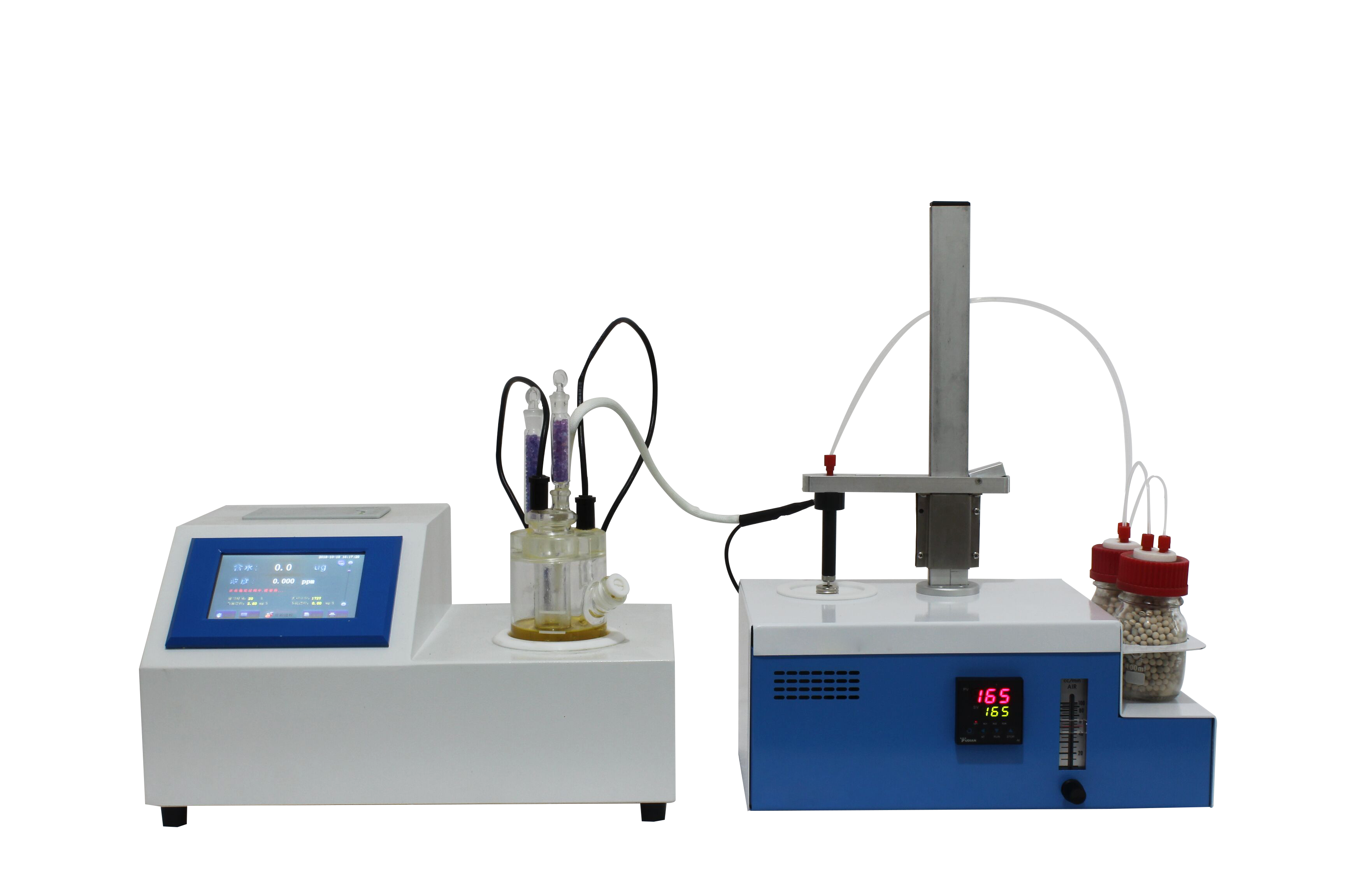 KSQL-310S-KHF 卡氏加熱爐主要分為兩個(gè)部分,第一個(gè)是V-310S庫(kù)侖法卡爾費(fèi)休水分測(cè)定儀,第二個(gè)是KHF-100卡氏加熱爐,由這兩部分組成了完整的KSQL-310S-KHF 鋰電池材料專用卡氏水分測(cè)定儀。