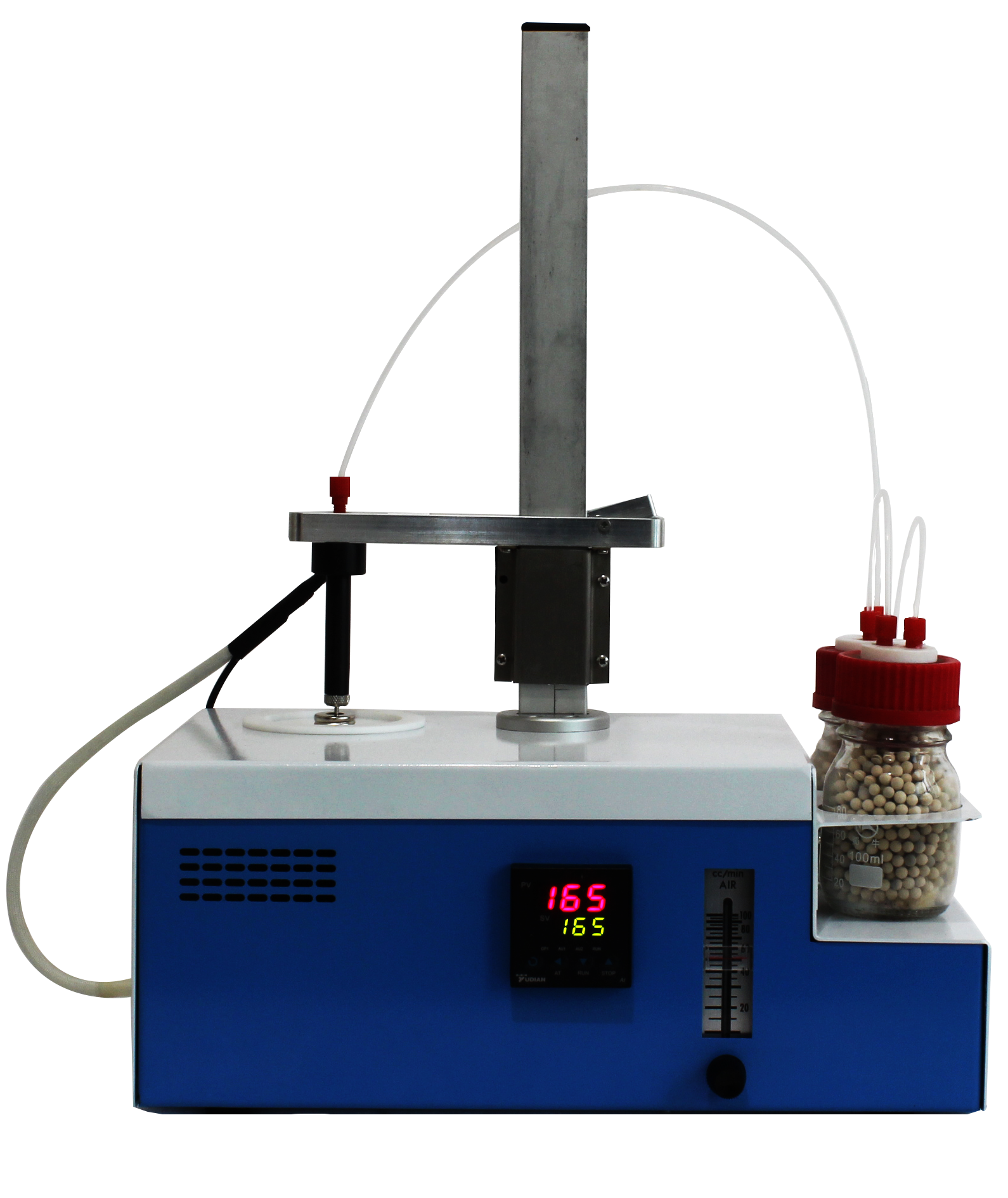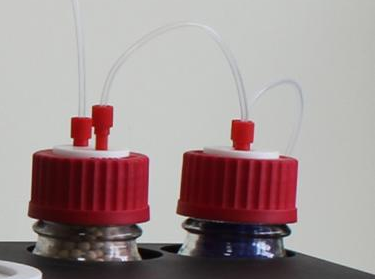 4.5、氣口鏈接至儀器上方的兩個(gè)干燥瓶,并且將干燥瓶用管路相連接。
