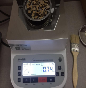 再次測試同樣撕取2克紙皮均勻平鋪在托盤中,5分鐘左右檢測結束結果顯示10.74%。