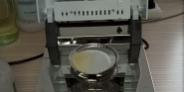 二、儀器本身有個(gè)自動(dòng)降溫過程,為求得數(shù)據(jù)的準(zhǔn)確性,故在進(jìn)行第二次測(cè)量的時(shí)候先等待幾分鐘,使儀器顯示溫度為40度以下時(shí)再進(jìn)行第二次測(cè)量,這次我們加大膠水樣品量為7.025克,將膠水均勻滴于鋁箔盤上,溫度照樣設(shè)定在120℃,按“START”鍵開始進(jìn)行測(cè)試,由于這次的膠水量比較多,所以儀器此次用了17分鐘43秒才測(cè)試結(jié)束,測(cè)試結(jié)果數(shù)據(jù)顯示31.17%(含水率),按“單位鍵”切換其顯示數(shù)據(jù),則屏幕顯示其固含量為68.83%。
