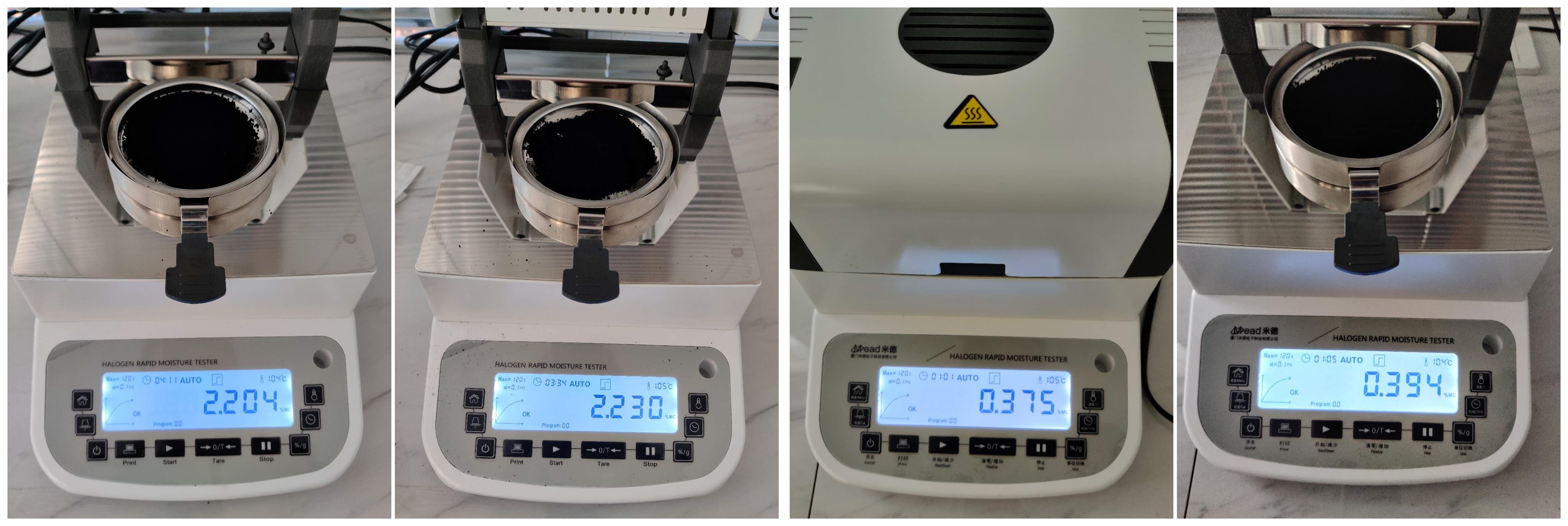 測試儀器:米德QL-720D(稱重精度0.001g,水分解析0.001%)